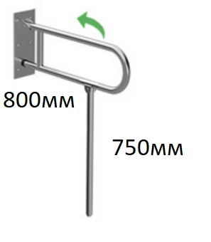 Поручень в санузел и туалет настенный откидной с опорой к полу 800х750 d38