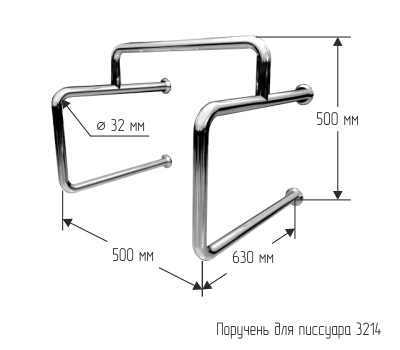 Поручень из нержавеющей стали для писсуара 500х630х500мм