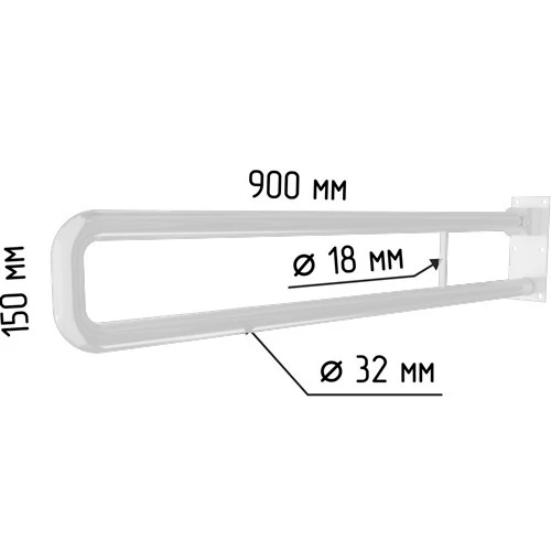 Поручень для туалета настенный откидной с фиксатором без бумагодержателя по ГОСТ 900x150 мм Ø 32, белый