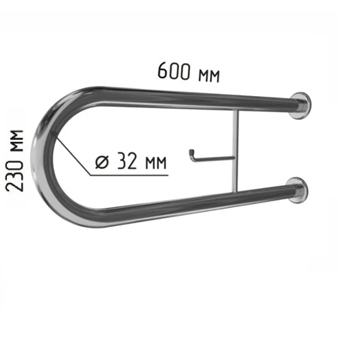 Поручень для унитаза двухопорный неоткидной с держателем туалетной бумаги по ГОСТ 600х230мм Ø 32 (для детского унитаза арт. 9223)