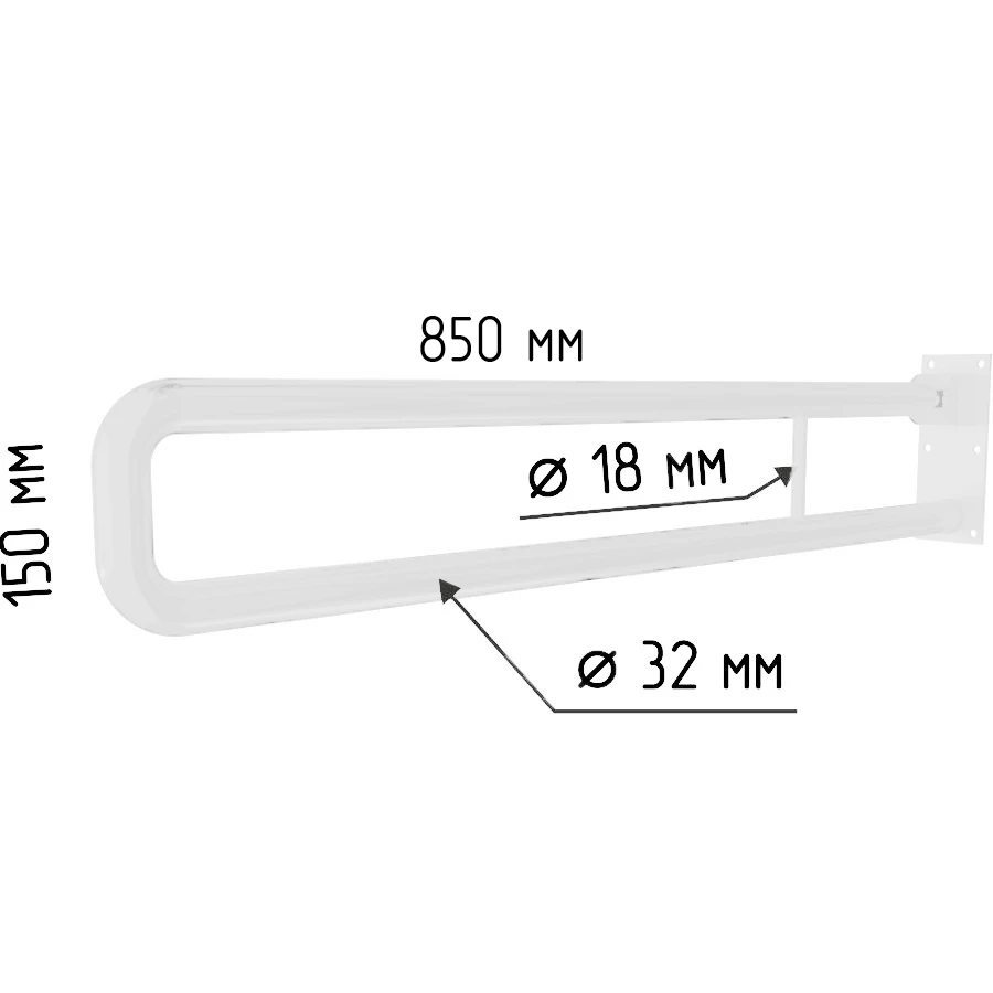 Поручень к унитазу настенный откидной U-образный 850х150 мм, белый