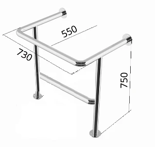 Поручень напольный на стойках для раковины с защитой слива 550х730х750мм
