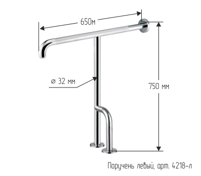 Поручень опорный напольный для ванной и санузла т-образный 650х750мм - Правый