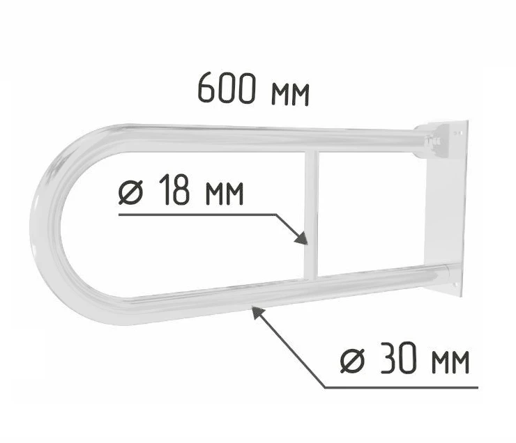 Поручень настенный откидной U-образный 600х200 мм, белый, диаметр трубы 30мм
