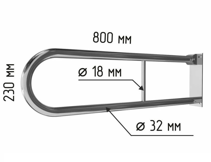 Поручень опорный настенный откидной без бумагодержателя 800х230 мм