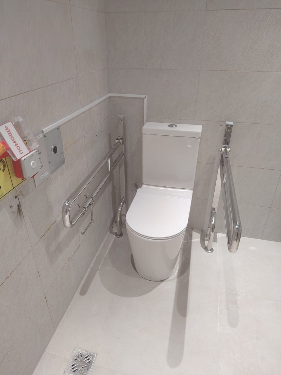 Ответ: Это специально разработанный поручень, установленный на отдельной стойке, который помогает пользователям с ограничениями мобильности поддерживать равновесие и безопасно передвигаться. Благодаря своей конструкции, он удобен для установки в небольших туалетных комнатах, где ограничено свободное пространство.