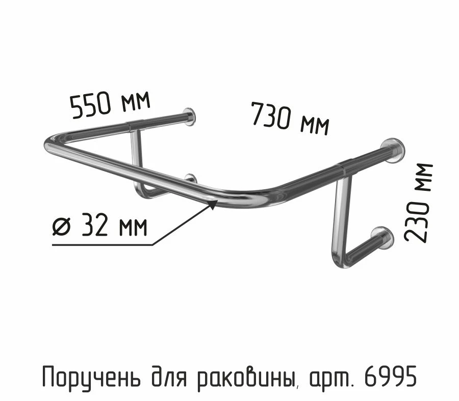 Поручень для раковины настенного крепления 550х730х230 мм