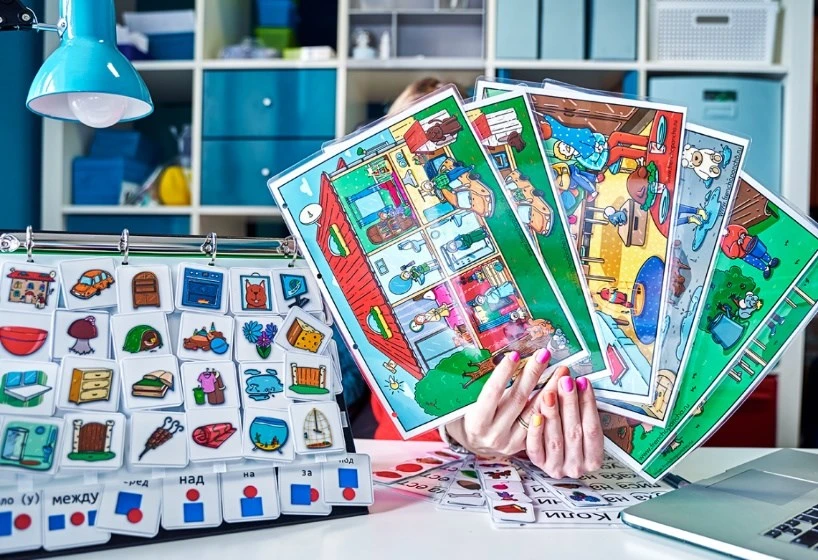 Пособие «Фразы» + расширенное пособие «Социальные истории» для обучения построению фраз, предложений и описательных рассказов.