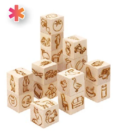 Комплект: кубики с изображениями предметов, относящихся к 12 лексическим темам, кубик с цветными гранями, кубики с изображением геометрических форм, членов семьи, эмоций, кубик с разными материалами на гранях, кубик-игральная кость, картонные карточки, фишки, фирменная сумка.