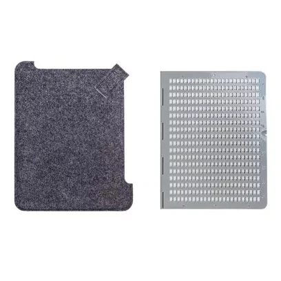 Прибор 18-ти строчный металлический с фиксаторами на нижней пластине, который предназначен для письма по системе Брайля и современный чехол из нетканого материала для его хранения (Цвет чехла обсуждается при заказе).