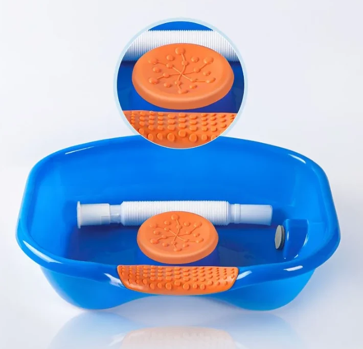 Расслабленность позволяет сосредоточиться на удовольствии от гигиенических процедур. Компактность! Пластиковая ванна для мытья головы в сравнении с надувной имеет небольшие размеры. Это позволяет располагать ее там, где это удобно.