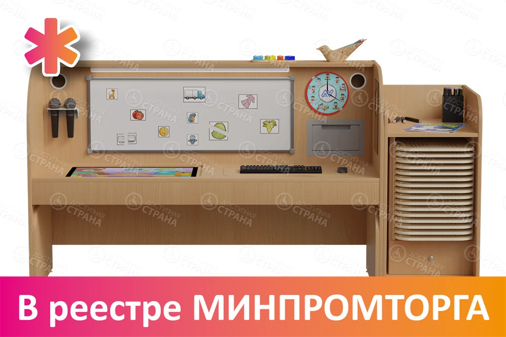 Поможет в обучении ребят с аутизмом профессиональный интерактивный стол для детей с РАС Standart. Оборудование травмобезопасное, не выделяет токсичных веществ, так как выполнено из ламинированной ДСП, а все углы закруглены. Устанавливается в образовательных учреждениях: детсадах, интернатах, школах, группах развития, коррекционно-развивающих центрах. Используется психологами-дефектологами, логопедами, воспитателями.