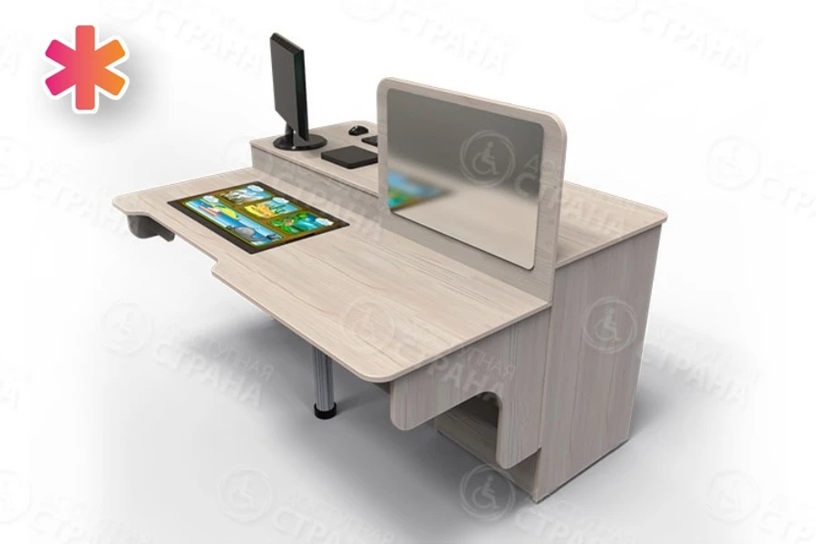 Профессиональный интерактивный логопедический стол Logo PRO — это профессиональный логопедический комплекс, оборудованный двумя полноценными рабочими местами: первое укомплектовано компьютером для педагога с 24-дюймовым монитором, а второе сенсорным планшетом, поддерживающим до 10 одновременных касаний. Комплекс предназначен для коррекции логопедических проблем у детей, проведения индивидуальных или групповых занятий.