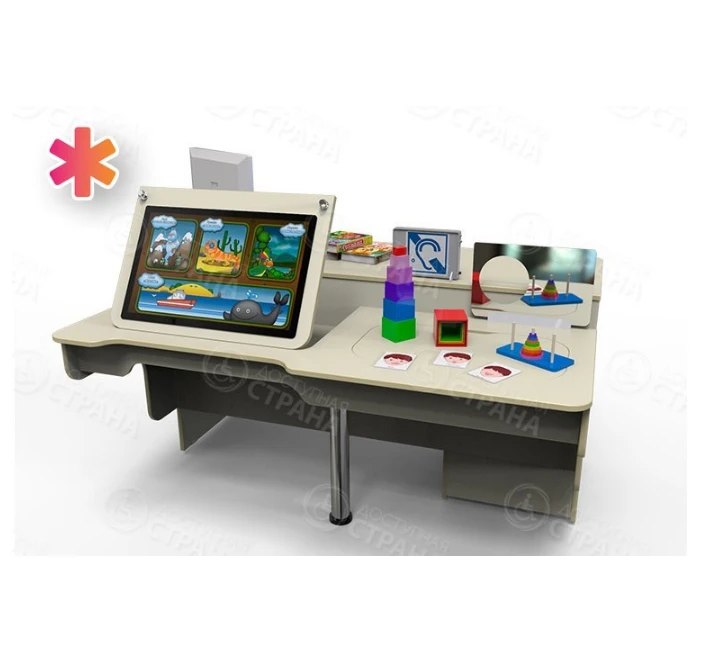 Профессиональный стол психолога-дефектолога – это специализированное диагностически-коррекционное оборудование, предназначенное для проведения психологических и логопедических занятий с детьми от 5 до 18 лет. Модель разрабатывалась с участием российских психологов и логопедов, которые дали рекомендации по программному обеспечению и конструкции стола – это повысило эффективность взаимодействия педагога с ребенком.