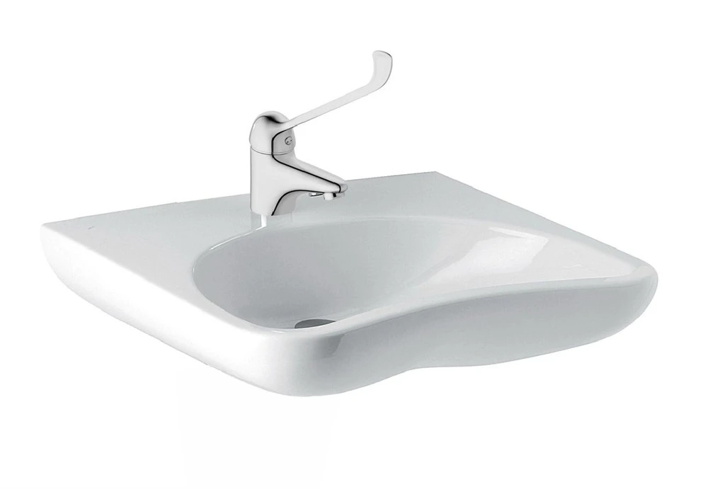 - Раковина для инвалидов с изогнутой формой и отверстием под смеситель