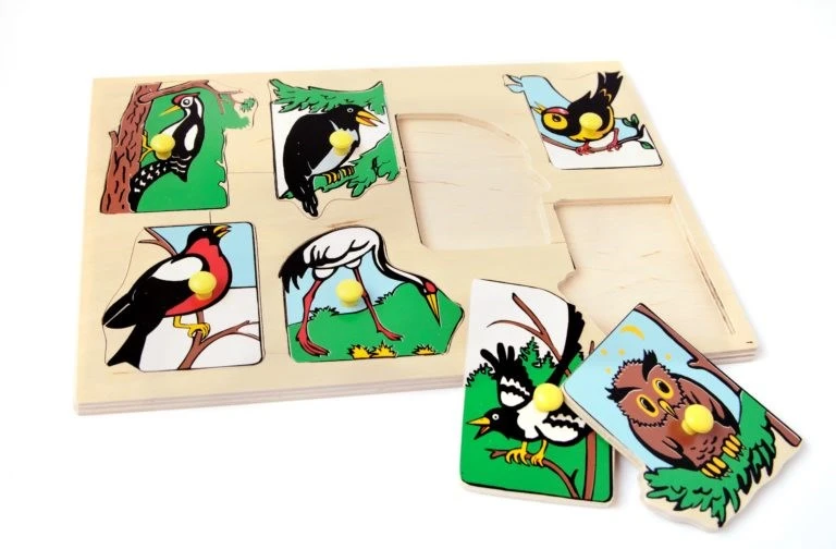 Игровое пособие представляет собой планшет размером 29,5*20,5*0,9 см, на котором находятся 7 вкладышей-«островов» с изображением птиц, населяющих Европу. На каждом вкладыше имеется ручка-кнопочка для удобства пользователей.