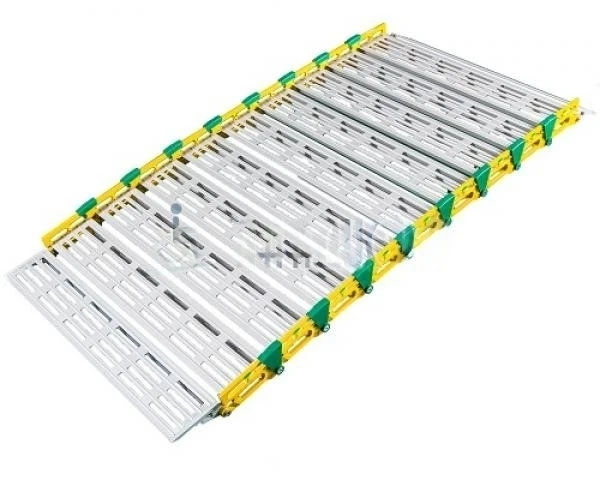 Рулонный пандус представляет собой лёгкую и удобную конструкцию из анодированного алюминия - аналог складного пандуса, но в отличие от складной конструкции он складывается не книжкой, а разворачивается и сворачивается в рулон. Имеет ребристые ячейки на поверхности для противоскольжения, облегчения самоочищения пандуса. Удобен для использования как внутри помещений, так и на наружных лестницах.