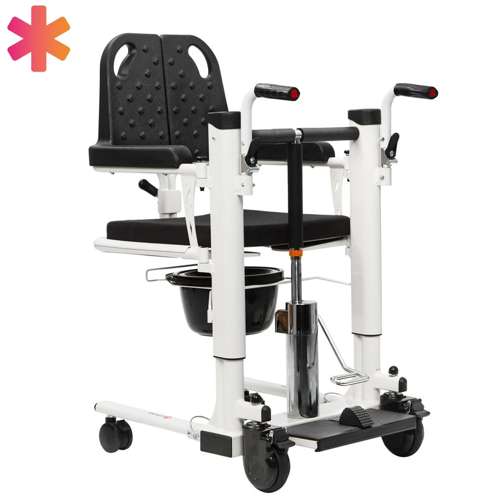 Кресло-стул облегчает пересаживание с кровати на коляску. Его удобно использовать при перемещении, в том числе в туалет и ванную комнату. При необходимости заменяет стационарный унитаз. Упрощает процесс принятия душа. Удобен при использовании рядом со столом, раковиной и другой мебелью.