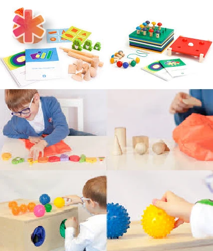 Методический комплект «Сенсорные пластины» направлен на развитие тактильного восприятия и различения с усложнением в виде когнитивной нагрузки (счет, выстраивание числовых последовательностей). Рекомендован для индивидуальной работы с детьми от 5 лет. Комплект предполагает проведение упражнений, как при полном сенсорном контроле, так и при условно-изолированном тактильном канале. Занятия направлены на развитие мышления через тактильное восприятие. В состав комплекта входит сборник упражнений с подробно описанными заданиями для разного возраста и разного уровня развития детей.