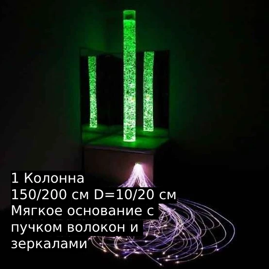 Сенсорный уголок с воздушно пузырьковой колонной и встроенным пучком гидрооптических волокон. Колонна размером 150х10 см/200х20 см.