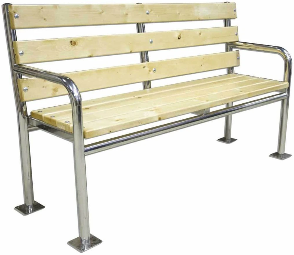 Основание скамьи изготавливается из нержавеющей стали марки AISI 304, что позволяет использовать скамью на улице и в помещении.
