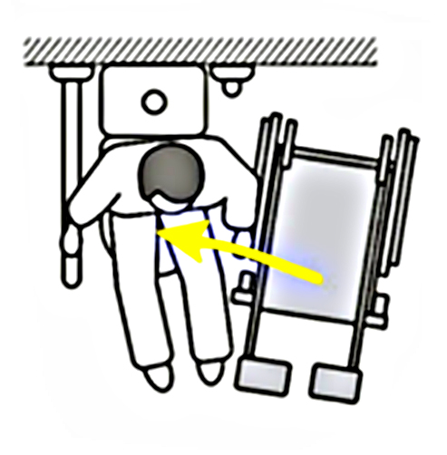 - Свободная зона для размещения коляски между унитазом и душевым сиденьем. При отсутствии душевого поддона, когда пространство душевой зоны делается в одном уровне с полом, эта свободная зона обеспечивает удобство пересадки и на душевое сиденье, и на унитаз. (Если организовать душевую зону без перепада высот невозможно, свободное пространство используется только для боковой пересадки на унитаз.)