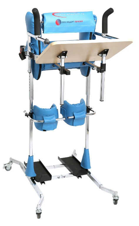 Опорная система для пассивной реабилитации, которая позволяет пациентам с травмами спинного мозга (включая шейный отдел), ДЦП и различными неврологическими нарушениями, вызывающими полный или частичный паралич верхних и нижних конечностей, принимать вертикальное положение без использования дополнительных средств поддержки (костылей, тростей и т. д.).