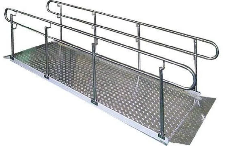 Стационарный пандус для инвалидных колясок Простой для крыльца высотой до 8,5см с настилом из алюминия, поручнями из нержавейки