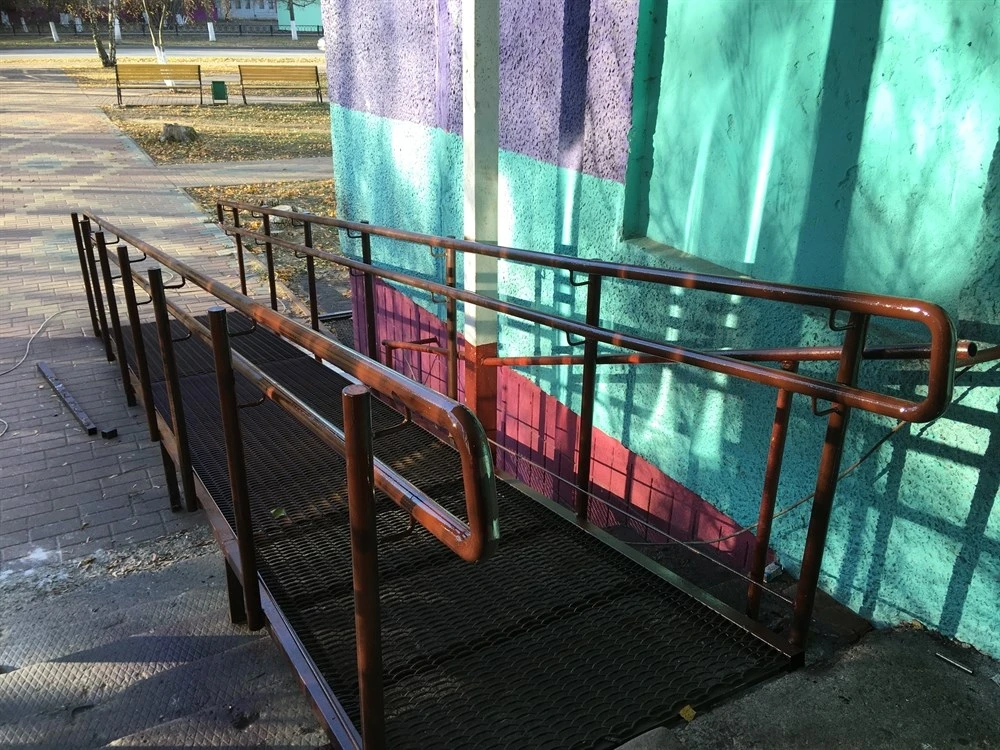 - Пандус стационарный с поручнями из конструкционной окрашенной стали