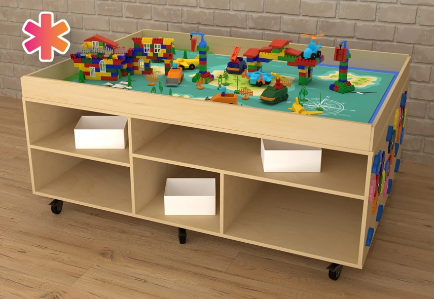 STEAM-стол “Море, суша и лес-3” – многофункциональный развивающий детский игровой модуль. Рациональное использование имеющихся площадей – его основная особенность. На столешнице размещается ландшафтная локация, а по бокам стола – математическая панель и ространство для хранения развивающих игр; это делает его необходимым элементом оснащения пространства для занятий с детьми. Стол имеет колёсики – это позволяет без труда перемещать его сколько угодно раз по помещению. STEAM столы широко используются дошкольными педагогами и некоторыми узкими детскими специалистами – логопед, дефектолог, психолог – для групповых и индивидуальных занятий с детьми дошкольного и младшего школьного возраста.