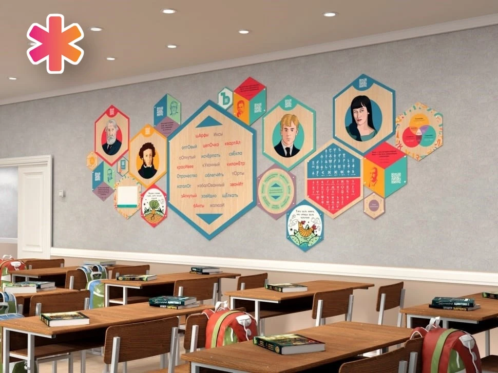 Образовательные панели для оформления стен школьных учреждений. Выполняют две функции: декор и соответствующее предмету обучение.