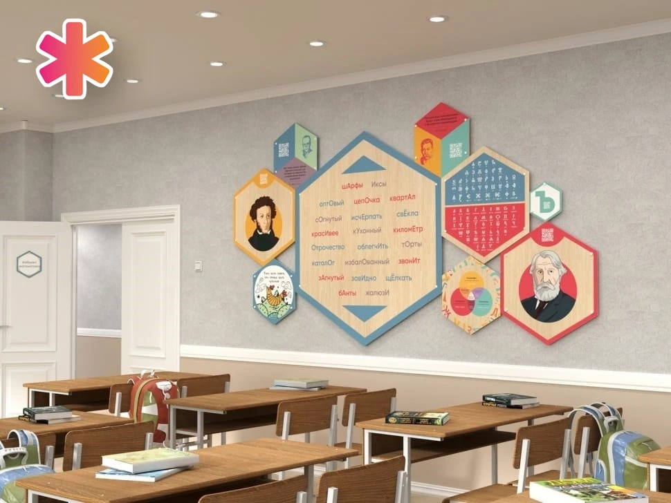 Образовательные панели для оформления стен школьных учреждений. Выполняют две функции: декор и соответствующее предмету обучение.