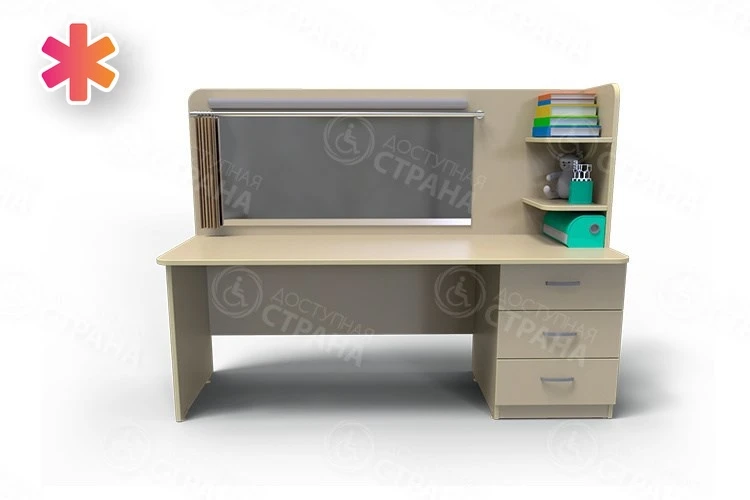 Наша компания реализует мебельный стол логопеда АВЛ-001 собственного производства. Это оборудование органично впишется в кабинет педагога или игровую комнату детского сада, начальной школы, центра с логопедическим уклоном. Оно оснащено встроенным зеркалом, лампой, ширмой, а также удобными полочками, ящичками для дополнительных материалов либо игрушек. Кроме того, столик не занимает много места и абсолютно безопасен для детей за счет скругленных углов.