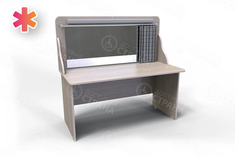 Декоративный корпус оборудования изготавливается из ламинированной ДСП, а его кромка – из ПВХ. Цвет подбирается по желанию заказчика. Готовый стол органично вписывается в кабинет логопеда или психолога. Работать за ним возможно, как с одним ребенком, так и с двумя.