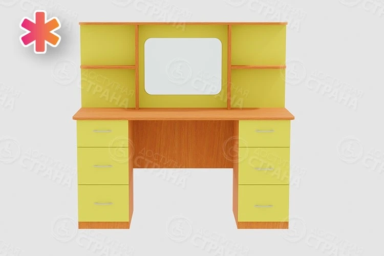 В столе всего 6 выдвижных ящиков для хранения. По 3 с каждой стороны. В них поместится все необходимое для организации рабочего процесса. На столешнице по бокам есть полки, где можно хранить вещи, которые постоянно нужны «под рукой». Это упрощает процесс работы, так как нет необходимости постоянно наклоняться к ящикам за часто используемыми предметами.