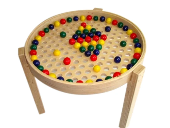 Все элементы изготавливаются из безопасных для детей материалов. Шарики окрашены в яркие цвета, привлекающие внимание. Стол имеет бортики, предупреждающие падение элементов на пол. Отсутствие острых углов делает игру максимально безопасной.