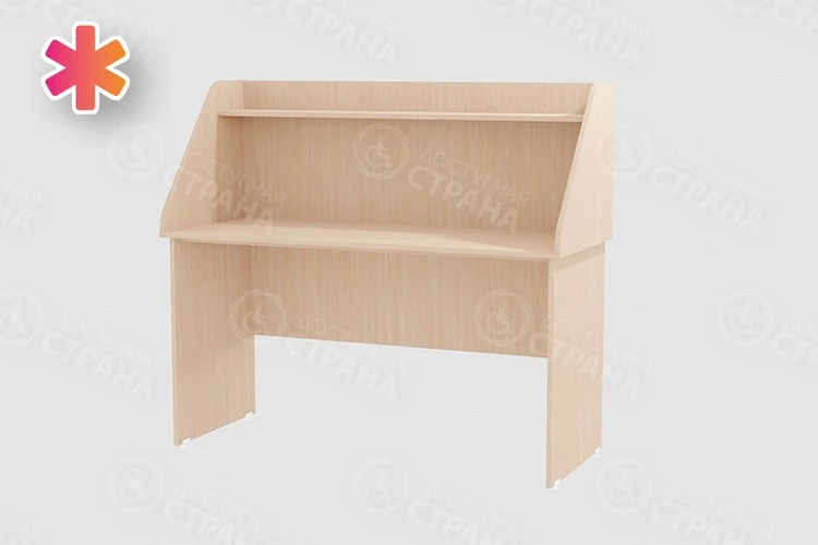 Изделие оптимального размера. Большая и удобная столешница позволяет разместить все необходимые предметы так, чтобы они не мешали работе. Сверху расположена полка, на которой легко разместятся небольшие предметы, например, канцелярия. Также туда можно поставить предмет декора для красоты.