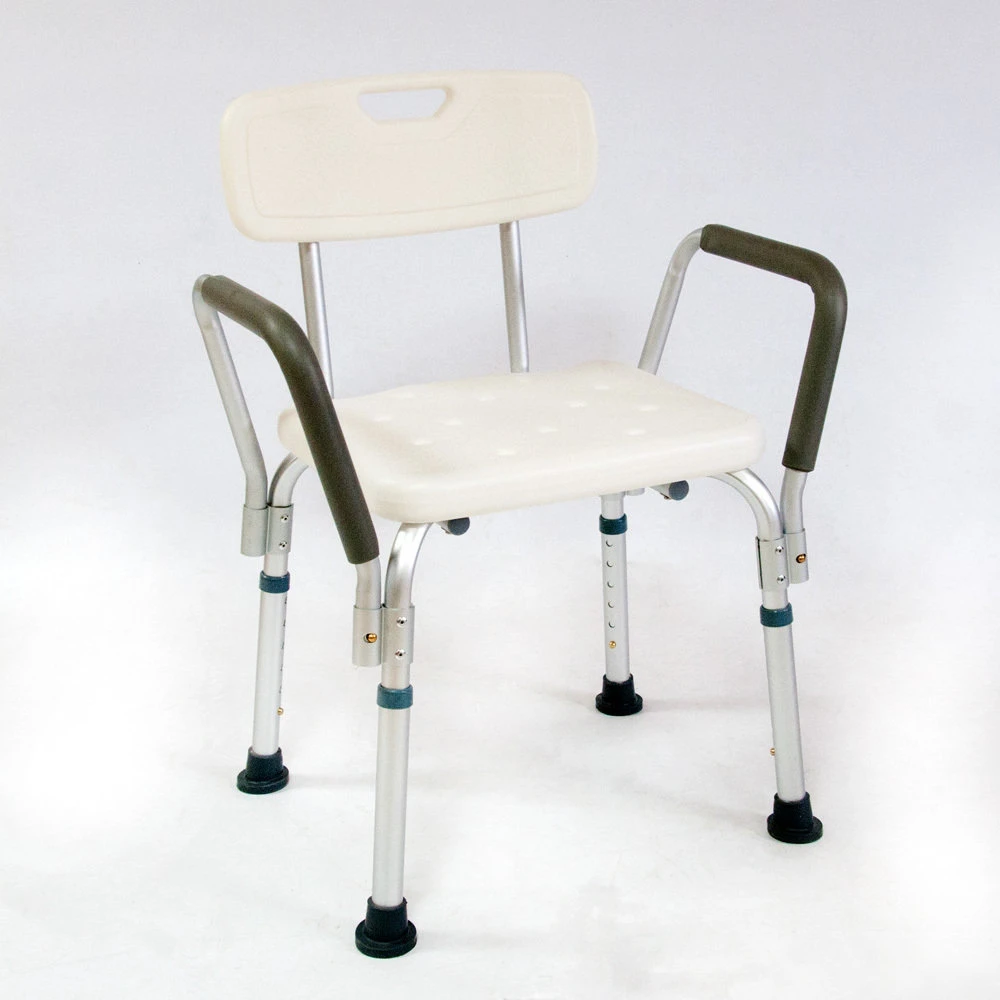 Стул для ванной комнаты со съемными подлокотниками, предназначен для ухода за больными в условиях стационара или в домашних условиях. Рама выполнена из анодированного алюминия и не подвергается коррозии. Резиновые наконечники на всех 4-х ножках препятствуют скольжению, не оставляя следов на поверхности и обеспечивают безопасность пациента. Сидение выполнено из высокопрочного полиэтилена. Высота сидения регулируется кнопочным фиксатором с шагом 2,5 см. Быстросъемные подлокотники для удобства пользователя имеют нескользящее.
