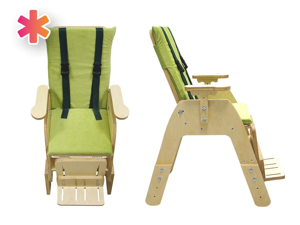 Стул ортопедический для детей с ДЦП, рекомендован при наличии отставания в двигательном и психоречевом развитии, при наличии проблем с позвоночником. Стул помогает держать ровно туловище, руки, ноги, имеет регулировки и фиксаторы для удобного расположения ребенка. Сидение и спинка имеют тканевую мягкую подложку. Имеется подпор для рук, регулируемый подпор для ног. В конструкции предусмотрены широкие регулировки сидения, подлокотников и подножки. Для полноценных занятий советуем приобрести вместе со стулом еще один модуль – стол для детей с ДЦП.