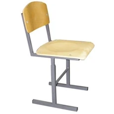 Сиденье и спинки ученических стульев изготавливаются из фанеры. Торцы деталей шлифуются, а поверхность покрывается лаком в два слоя. Металлический каркас стула изготовлен из квадратной трубы 20 х 20 и 25 х 25 мм и окрашен краской с высоким качеством износостойкости. Высота сидения регулируется.