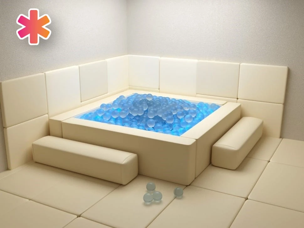 В сухом бассейне могут проводиться как активационные, так и релаксационные занятия. Для сенсорной релаксации выбирается нежное приглушённое освещение и тихая спокойная музыка. Дети погружаются в шарики и чувствуют успокаивающее сенсорное давление на кожу. Это особенно хорошо для детей с расстройствами сенсорной интеграции.