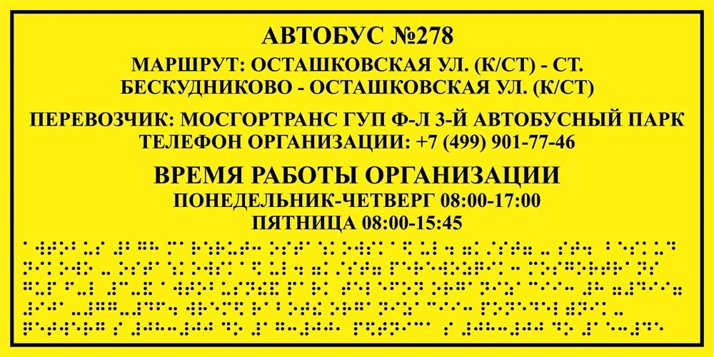 Табличка тактильная для автобуса 150х300 мм, ПОЛИСТИРОЛ