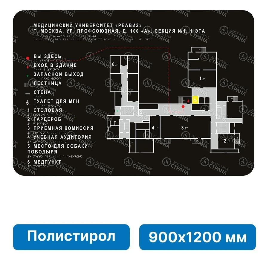 Тактильная мнемосхема, 900х1200 мм, чёрная, ПОЛИСТИРОЛ