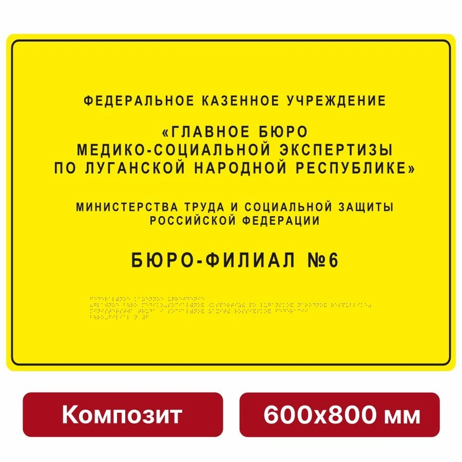Тактильная вывеска со шрифтом Брайля, 600х800 мм, композит
