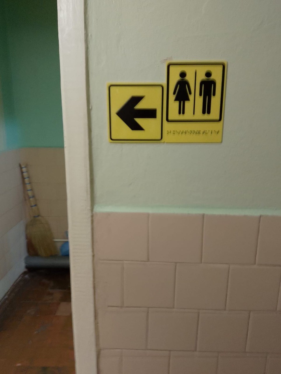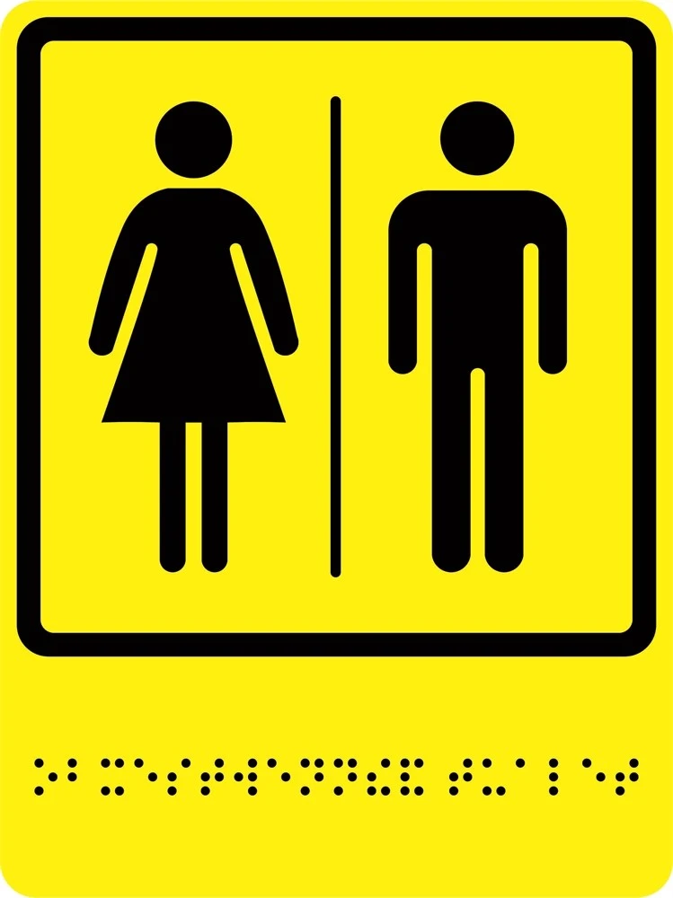 Тактильно-визуальный знак обозначения блока общественных туалетов.