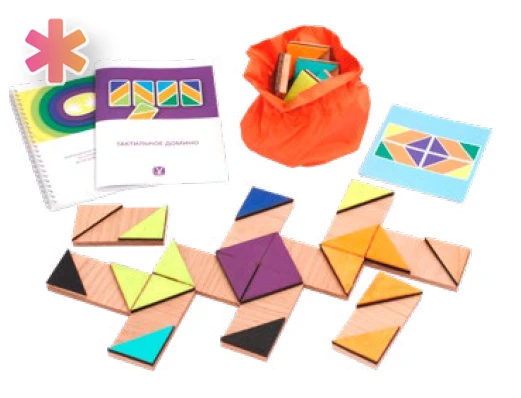 Игровой набор предназначен для развития тактильных ощущений, осязательного и зрительного восприятия, а также конструктивного праксиса. С помощью этого набора формируются представления о фактуре предметов (пушистый, гладкий, шершавый, мягкий, твёрдый, тёплый, холодный и т.д.), об оттенках цветов, о пространственном расположении предметов. Воспитывается умение понимать «правила игры», работать в группе, развиваются навыки социального взаимодействия. Набор «Тактильное домино» особо эффективен при работе с детьми, имеющими нарушения эмоционально-волевой сферы.