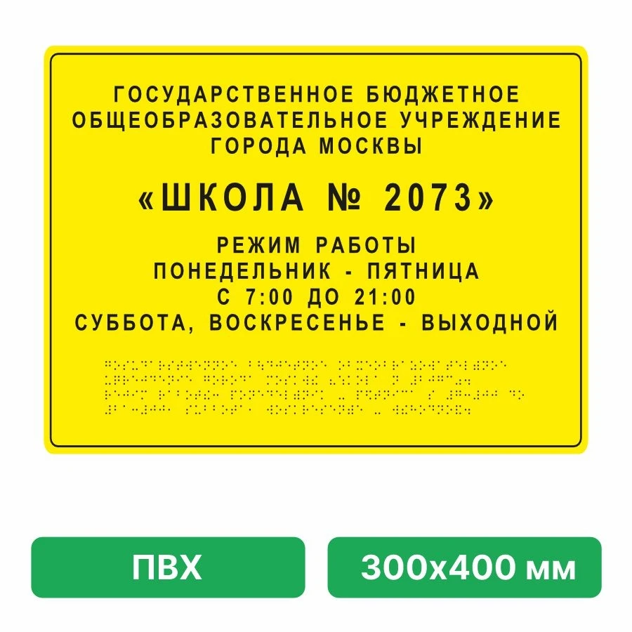 Тактильная вывеска со шрифтом Брайля, 300х400 мм, ПВХ