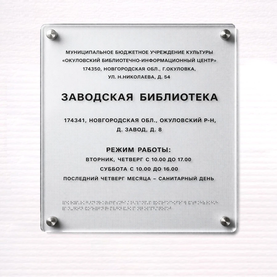 Тактильные таблички / вывески с азбукой Брайля 500х600мм премиум на оргстекле