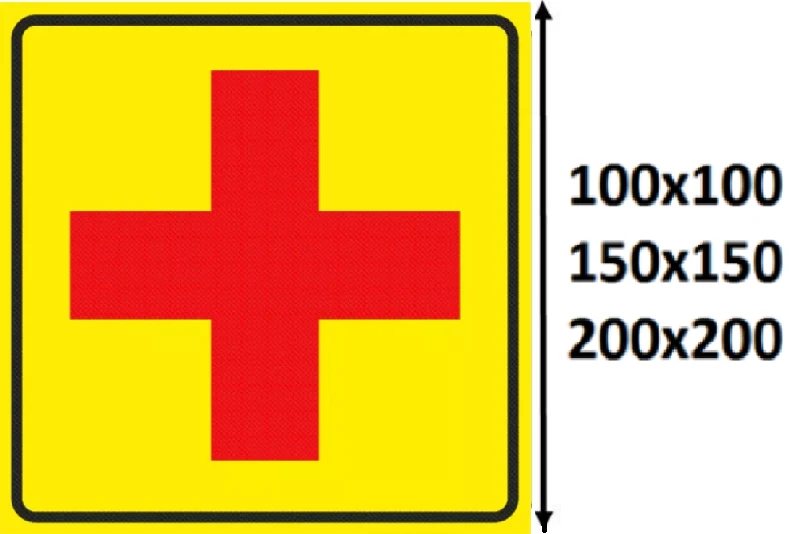 Специализированные знаки, предназначенные для установки для инвалидов, должны иметь следующие размеры стороны квадрата: перед входами в общественные здания и сооружения, а также в автобусы, троллейбусы и трамваи — от 150 до 250 мм; внутри общественных зданий и сооружений — от 150 до 200 мм; внутри железнодорожных вагонов, судов воздушного и водного транспорта, от 100 до 150 мм.