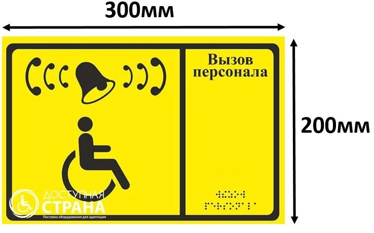 Тактильная табличка "Вызов персонала" со шрифтом Брайля, 20х30 см